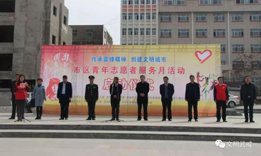 2018年是毛泽东等老一辈革命家为雷锋同志题词55周年,为了进一步学习和弘扬雷锋精神,倡导时代新风正气,引导广大群众培育和践行社会主义核心价值观,为创建全国文明城市凝聚智慧和力量,营造浓厚工作氛围,3月5日下午,武威军分区政工处、团市委、市文明办、市教育局、市残联及市区相关单位在文化广场举办了以“传承雷锋精神 创建文明城市”为主题的市区青年志愿者服务月活动启动仪式。