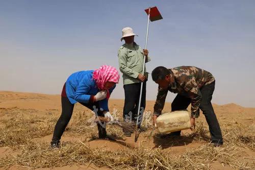 连日来,全国劳模王银吉带领一家人,在凉州区长城镇王家治沙区植树造林。从3月9日开始至目前,平均每天投入15个劳力,已栽植桦棒2万多株、榆树1000多株。从1999年起,经过19年的“鏖战”,王银吉一家在风沙口累积压沙8000多亩,栽植各类乔灌木600多万株,营造了一道大型防风固沙林带。