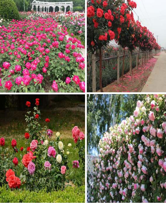 蔷薇科蔷薇属灌木,高2-3米,有散生皮刺,花重瓣或半重瓣,直径3-5厘米,花量大,花期长,花味香。耐寒、耐干旱和瘠薄,在盐碱土中也能生长,以疏松、肥沃土壤为佳。抗病虫,易栽培,在广泛适用于我市城区、镇区、农村社区、景区、产业园区绿化。