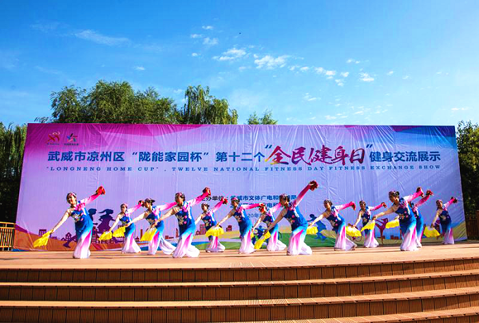 8月8日上午,在第十二个“全民健身日”来临之际,由武威市文体广电和旅游局、凉州区文体广电和旅游局联合举办的武威市凉州区“陇能家园杯”第十二个全民健身日健身交流展示活动在凉州植物园文明实践大舞台隆重举行。