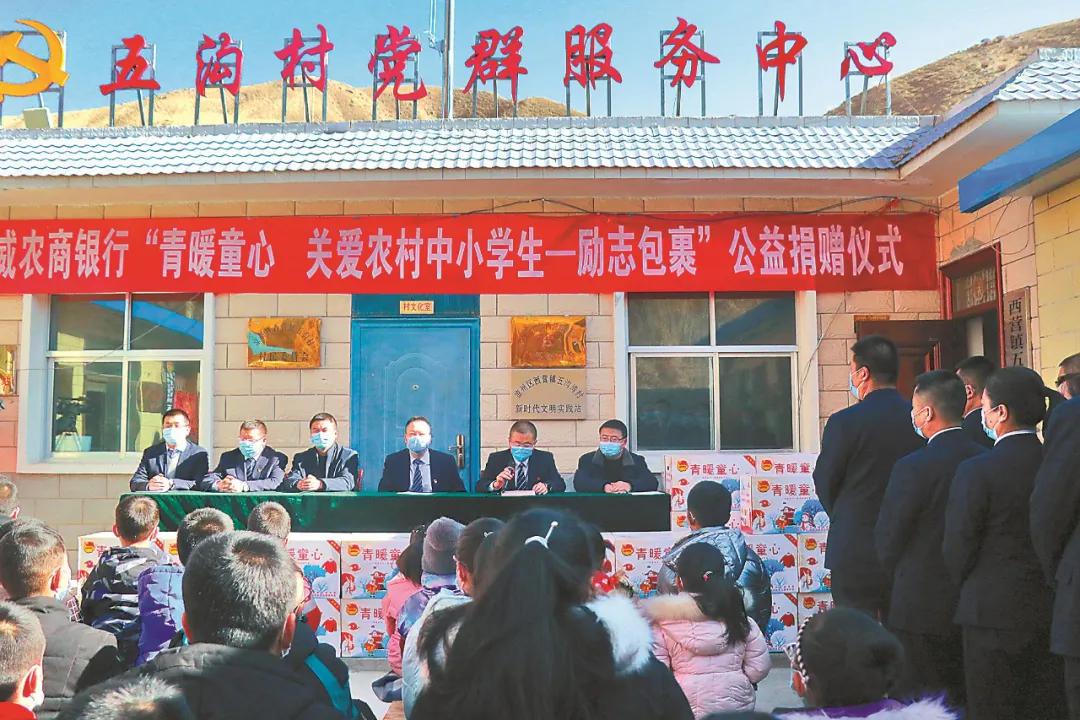 1月21日,暖暖的阳光均匀洒下,为冬日的小山村增添了一份温暖。武威农商银行帮扶干部来到凉州区西营镇五沟湾村,为49名孩子送去羽绒服、手套、帽子、围巾、书包、饮水保温杯、国学书籍等价值近2 万元的“励志包裹”。