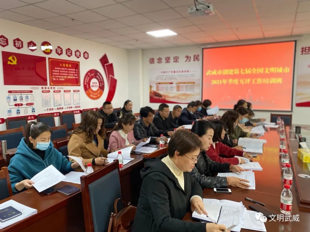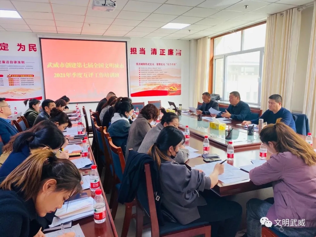 3月24日至25日, 市创城办举办了2021年季度互评工作培训班,标志着全市创建第七届全国文明城市街道季度互评工作正式拉开序幕。这次参训的对象来自进入考评人员库的凉州区7个街道办事处,主要由包抓共建单位干部、街道及社区创城专干、社区志愿者等组成,市、区创城办实地测评组全体人员同时参加了培训,共培训7场157人。