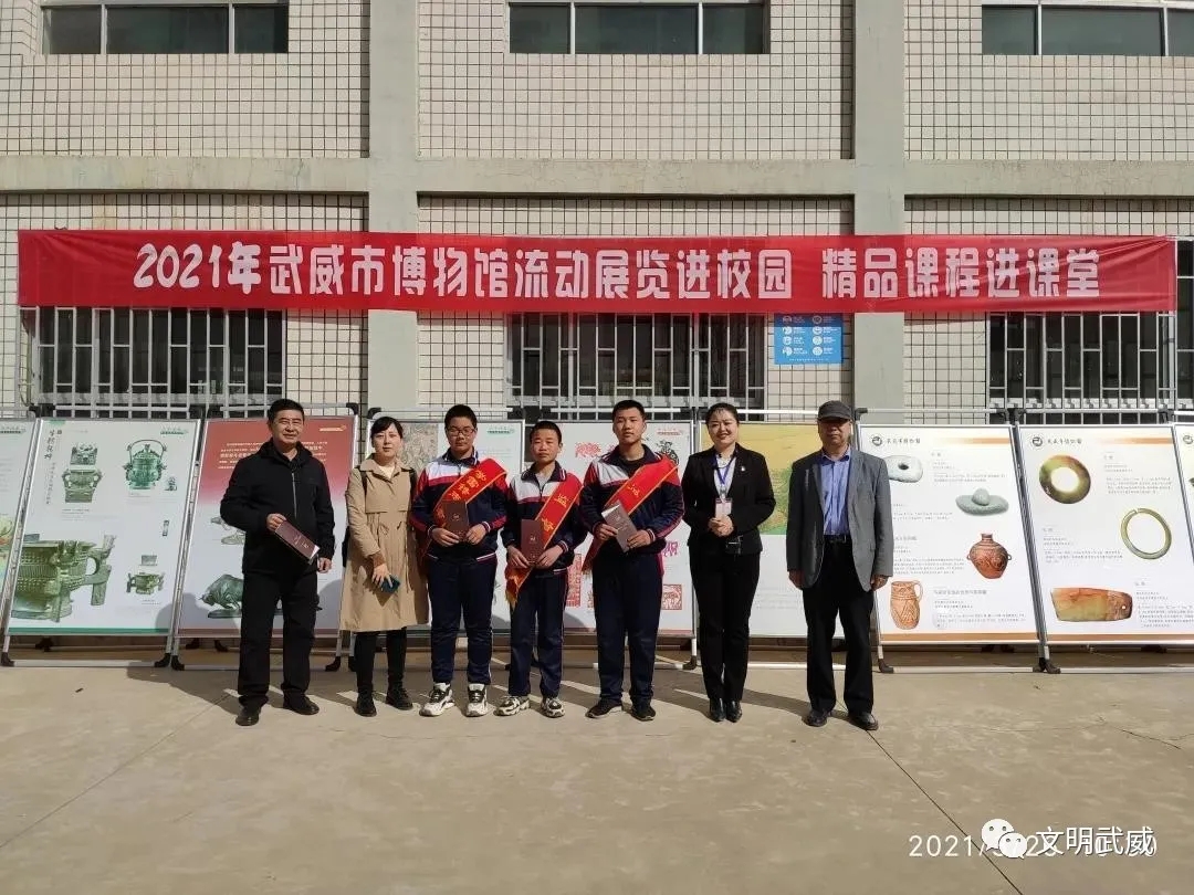 为了更好的发挥博物馆的社会教育功能,让更多的孩子近距离接触博物馆文物,了解家乡历史文化,丰富孩子们的精神文化生活。2021年3月26日,武威市博物馆走进武威第十一中学,组织开展了“流动展览进校园,精品课程进课堂”系列活动,为孩子们送去了一场别开生面的趣味教学活动。本次进校园活动通过图文展览和现场讲解的方式,向广大师生介绍了武威历史沿革和馆藏精品文物等内容,让师生们以文物为载体感受了家乡历史文化的魅力。
