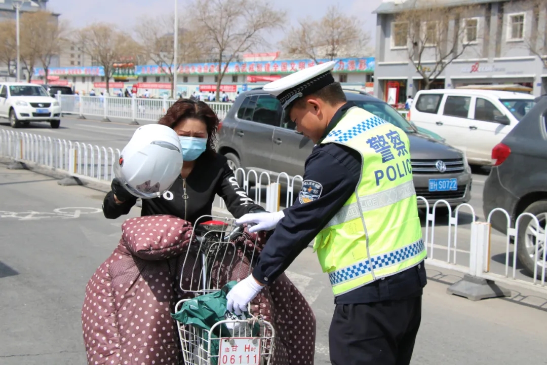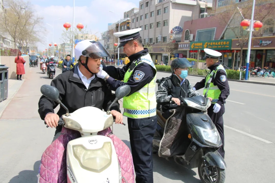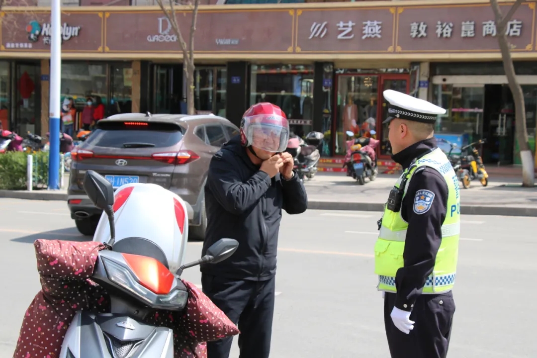 “你好,骑电动车请戴头盔。”