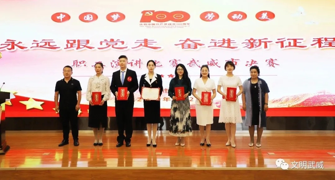 为深入学习贯彻习近平新时代中国特色社会主义思想和党的十九大精神,聚焦庆祝中国共产党成立100周年这条主线,进一步深化党史、新中国史、改革开放史、社会主义发展史宣传教育活动,引导广大职工勠力同心、接续奋斗。6月2日,武威市总工会举办了“中国梦·劳动美——永远跟党走 奋进新征程”职工演讲比赛武威市决赛,经过紧张激烈、精彩纷呈的角逐圆满落幕。