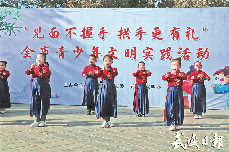 大力推广普及“拱手礼”,开展“行拱手礼·做文明人·创文明城”新时代文明实践主题活动,以务实举措倡导文明健康的社交方式,彰显凉州文化深厚内涵、提升武威文明城市形象。