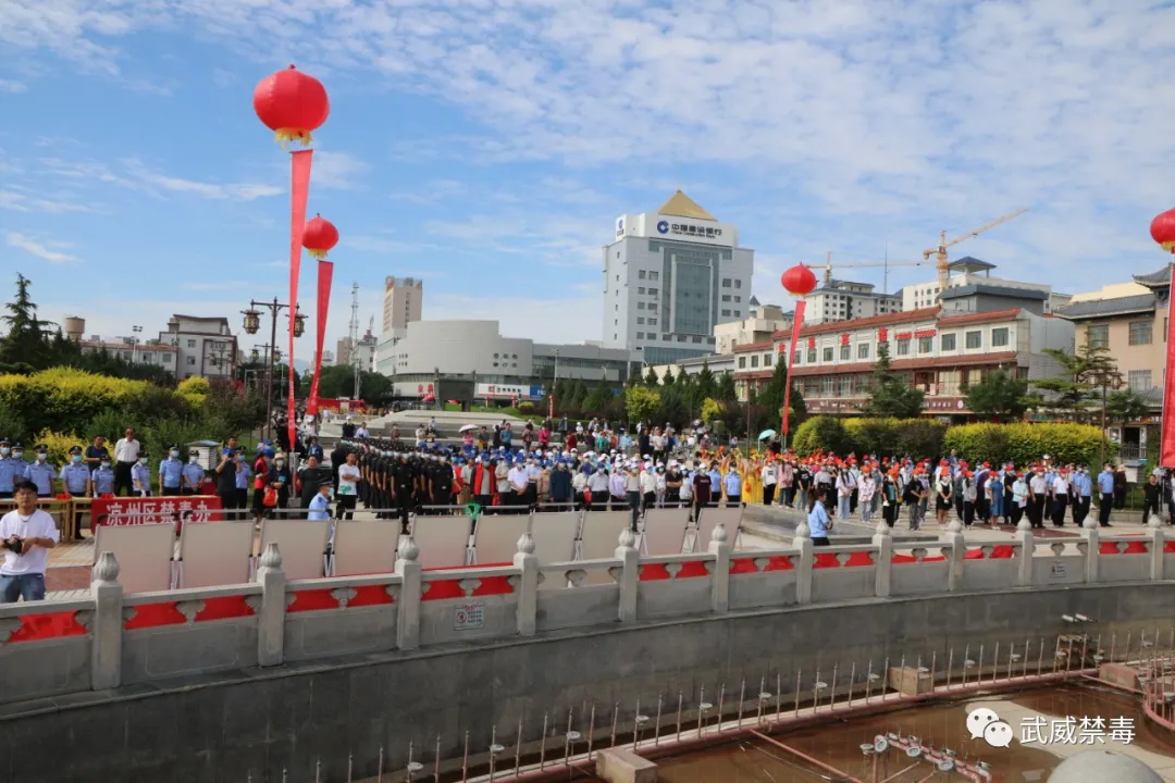 6月25日上午,第34个国际禁毒日来临之际,武威市、区两级禁毒委联合在武威市凉州区南城门广场举行武威市“6.26”国际禁毒日主题宣传活动,大力掀起禁毒宣传教育热潮,以优异成绩庆祝中国共产党成立100周年。