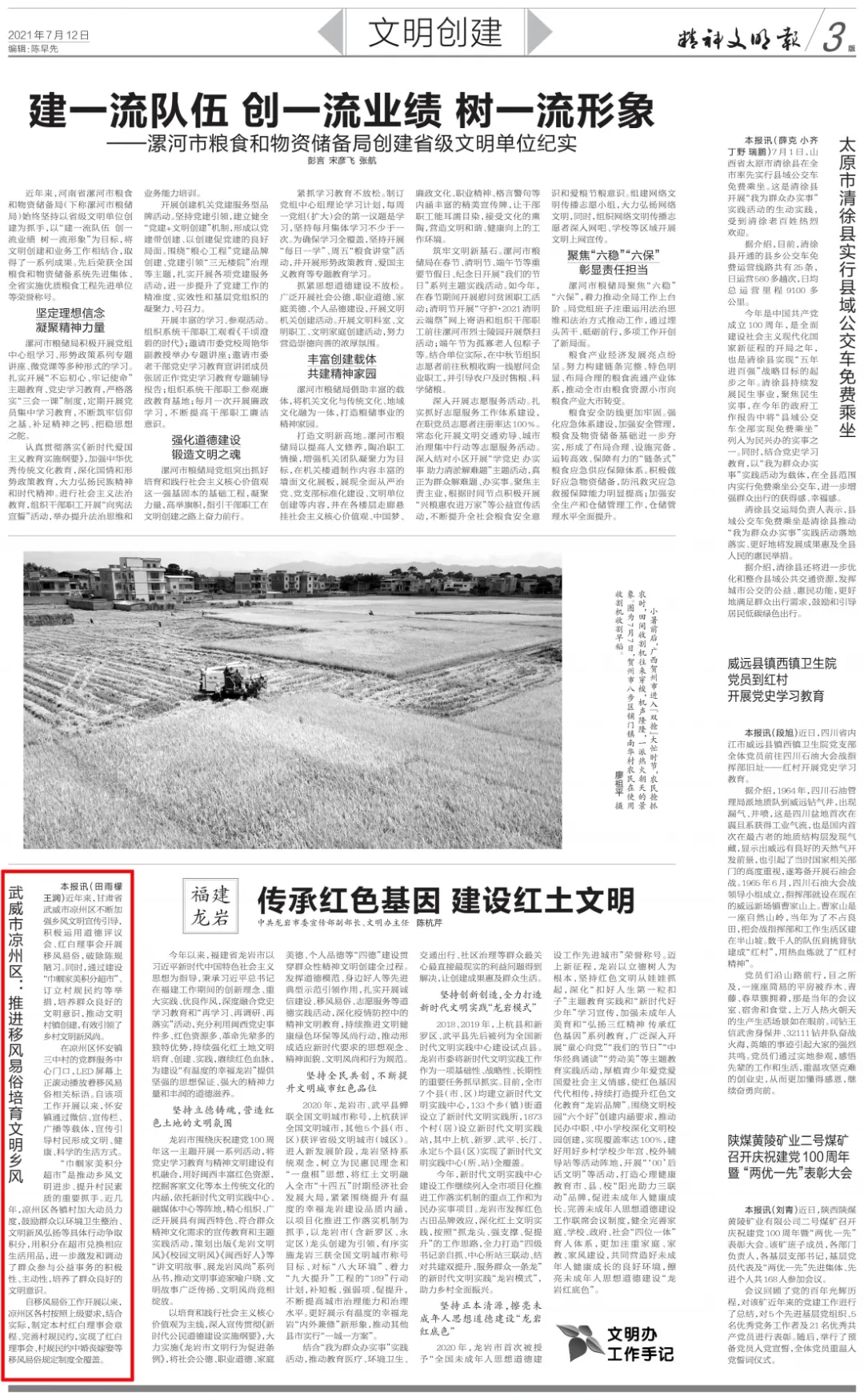 7月12日《精神文明报》刊登