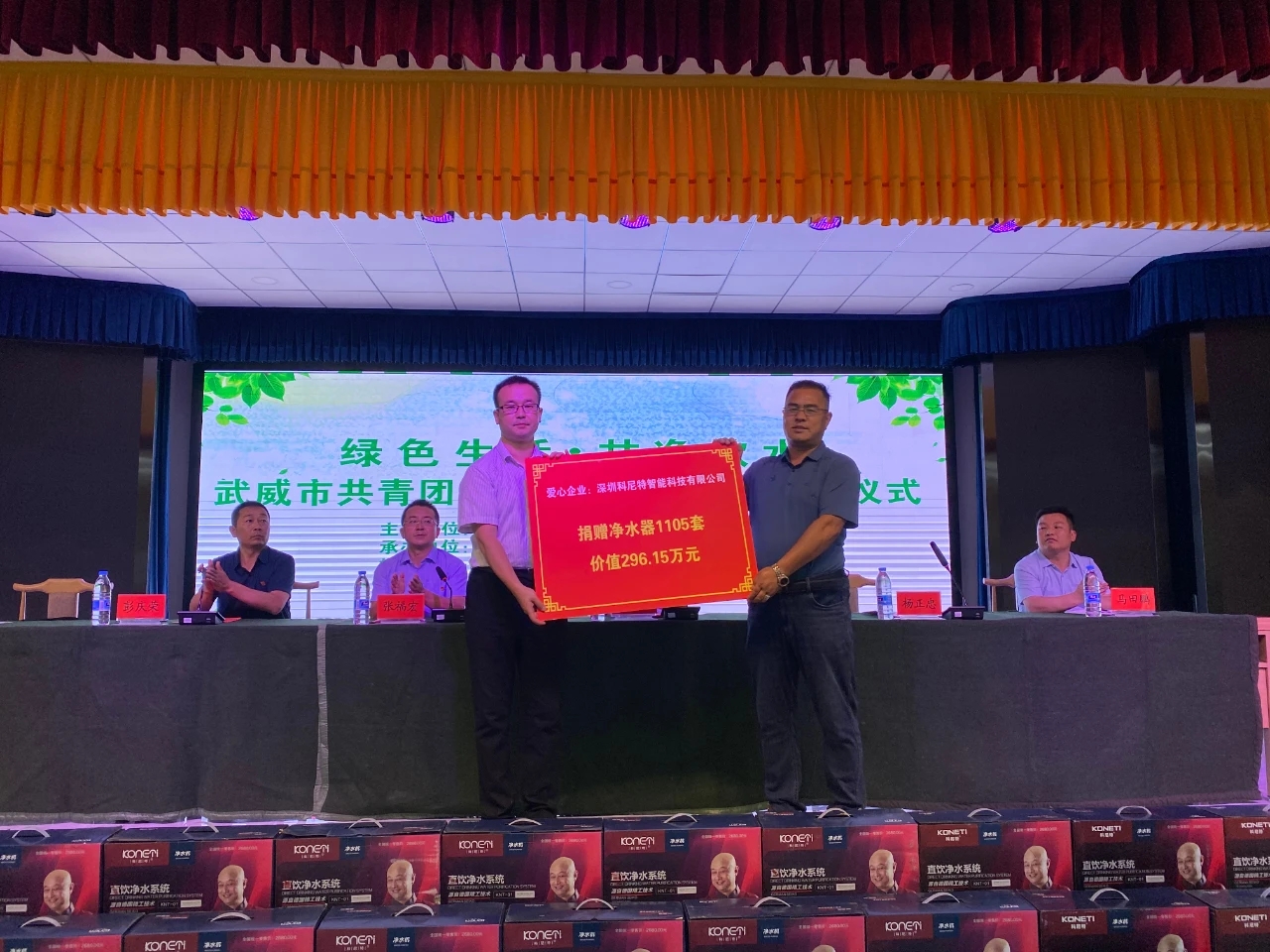 据悉,绿色生活·甘净饮水捐赠活动由共青团系统主导并发起,是立足脱贫攻坚与乡村振兴有效衔接,让农村生活更美好,积极动员社会资源,为改善农村饮水水质的乡村振兴公益捐赠活动。活动发起后,深圳科尼特智能科技有限公司积极响应,为我市1105个村委会和便民服务中心无偿捐赠净水器,价值296.05万元。