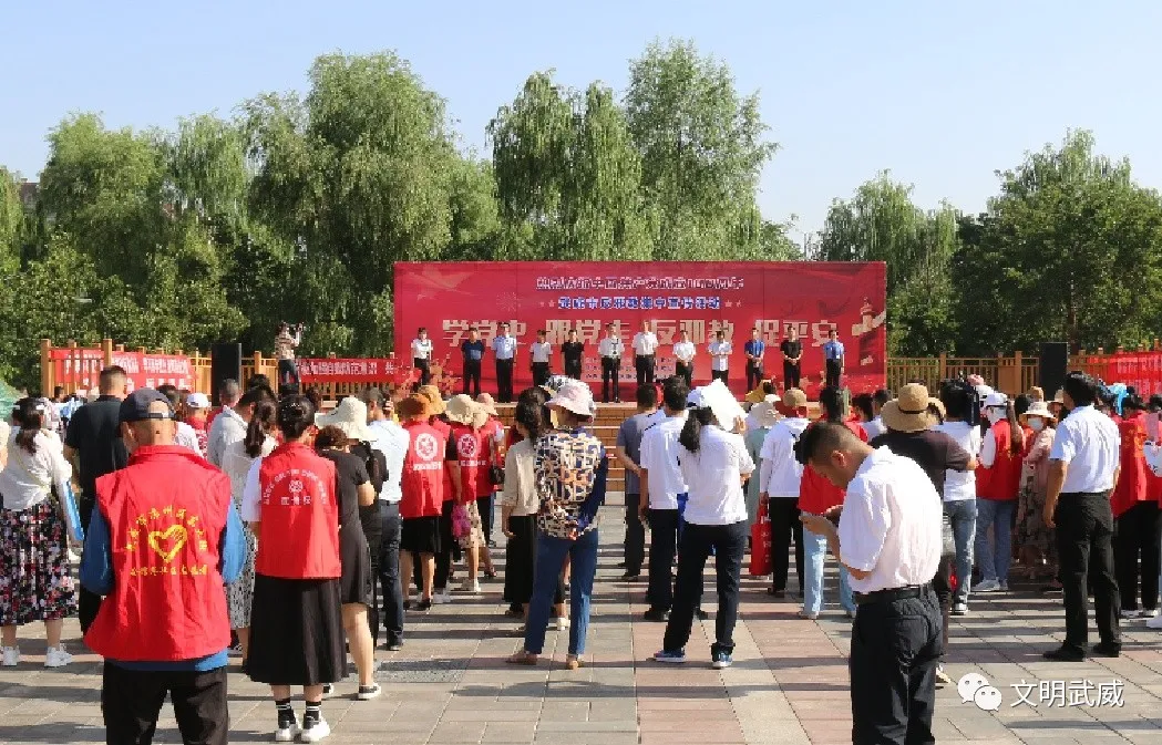 7月22日上午,武威市“反邪教集中宣传月”活动与全省同步全面启动,启动仪式在凉州区植物园中心广场举行。市、区相关部门,街道及群众代表共500余人参加启动仪式。民勤县、古浪县、天祝县同步进行了集中宣传活动。