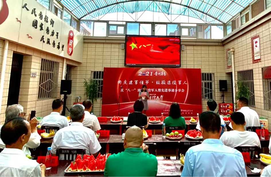 7月30日,凉州区西大街东小井社区联合武威市鸿都酒业有限责任公司,组织开展庆“八·一”致敬退伍军人暨先进事迹分享会。