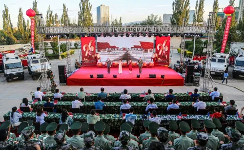 7月30日晚,武警甘肃省总队武威支队机关营区灯光璀璨、鼓乐高亢,庆祝中国人民解放军建军94周年“感悟光辉历程、担当强军重任”专题文艺演出举行。