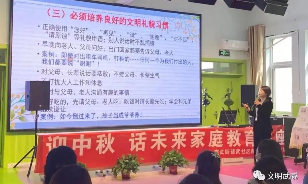 为了让家长充分认识到创建文明城市的重要性,并且掌握科学和先进的教育方法,凉州区第六幼儿园为小班新生家长们开展了以《良好的习惯会让你的孩子更优秀》为主题的专题家庭教育讲座。通过视频、案例分析、亲身体验等形式,详细介绍创建文明城市市民文明行为规范、市民文明出行等内容,呼吁家长积极参与到创建文明城市中来,同时,幼儿园倡导家长转变幼儿教育意识,帮助孩子从小养成良好的行为习惯。