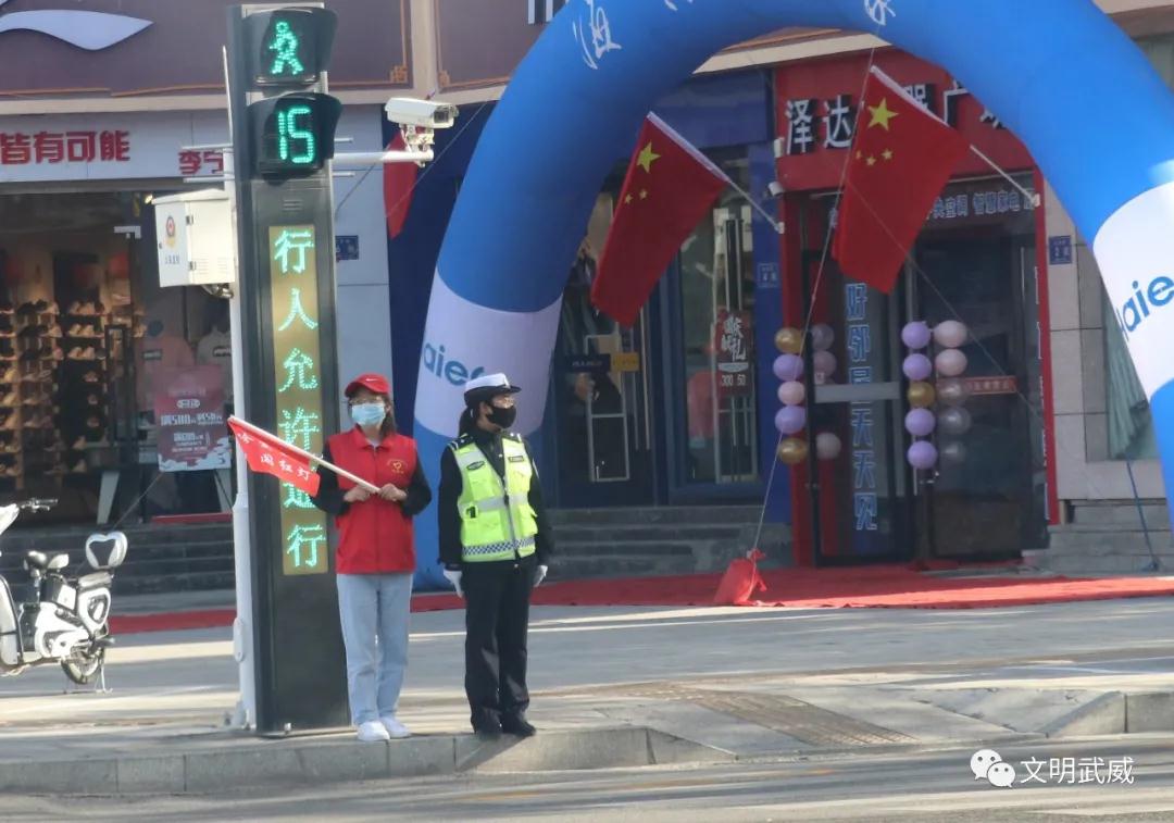 国庆小长假期间,正值市民群众出行高峰,为了给市民游客提供舒适、温馨的出行环境,营造文明和谐的节日氛围,助推全国文明城市创建,武威市组织志愿者在城区主干道开展文明交通劝导志愿服务活动,促进武威交通文明有序。
