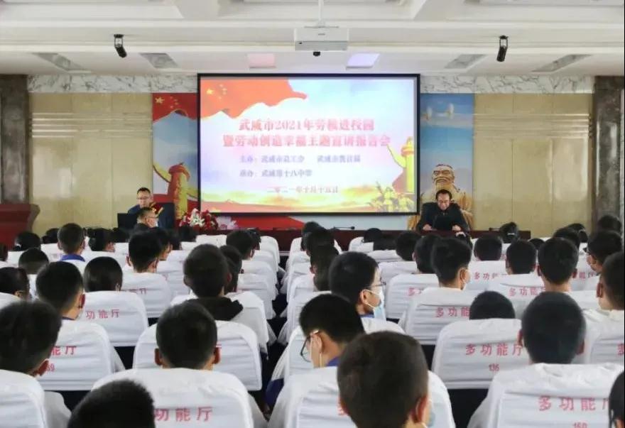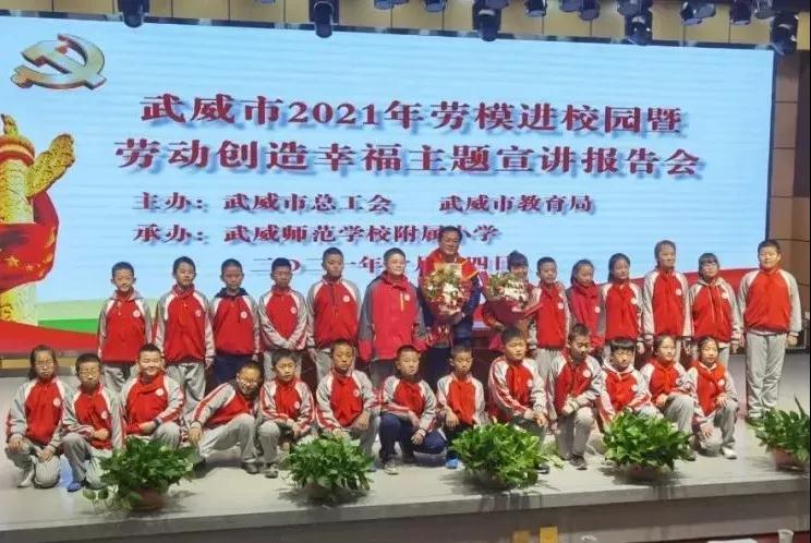 近日,武威市总工会结合党史学习教育,以“劳动创造幸福”为主题,联合市区教育局、区总工会开展“劳模进校园”宣讲活动,在“零距离”的接触中让莘莘学子聆听奋斗者的故事,让劳模精神成为学生成长成才的精神动力。