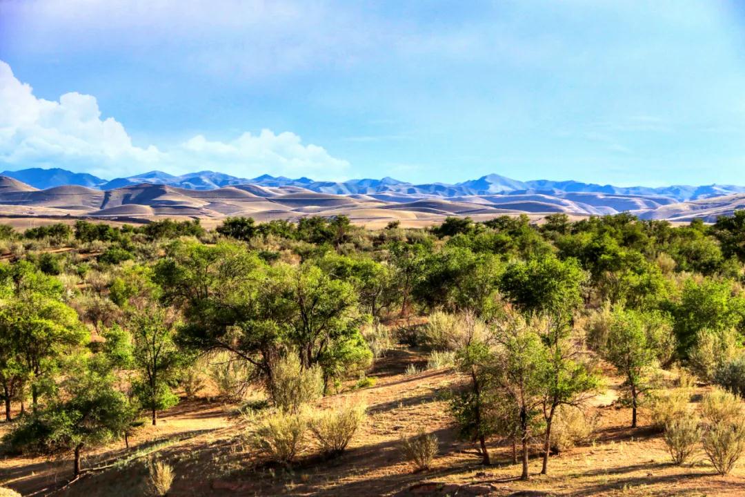 八步沙,位于腾格里沙漠南缘的甘肃省古浪县城东北30公里处、土门镇3公里处,上世纪六七十年代,这里还是“一夜大风沙骑墙,早上起来驴上房”,如今这里生长着茂盛的林木,已成为沙漠中的一片绿洲。