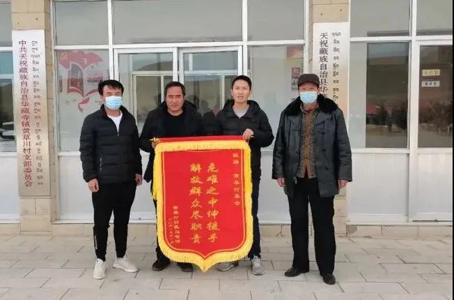 近日,天祝县华藏寺镇黄草川村村民马智河将一面“危难之中伸援手 解救群众尽职责”的锦旗送到了黄草川村村委会。