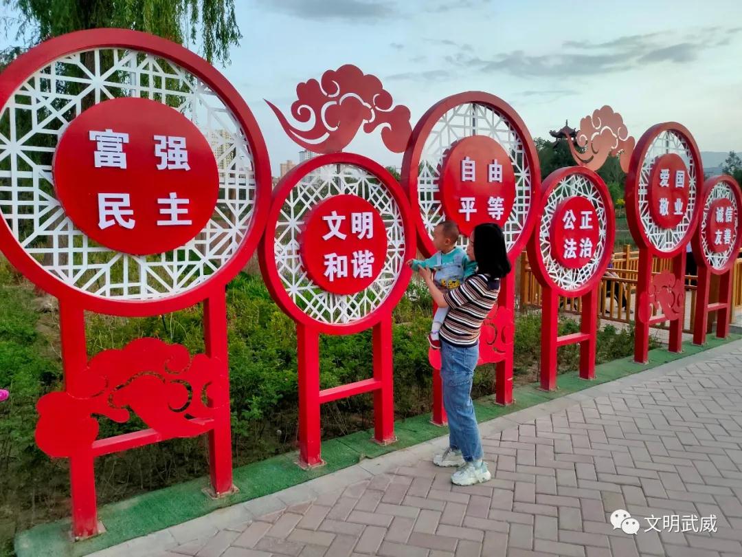 我市着力打造了一批爱国主义教育基地、主题公园、主题街、文化墙等主题教育示范点,让社会主义核心价值观摸得着、离得近、接地气。在凉州区各公园,市民总能与主题鲜明的宣传标语、图文并茂的公益广告不期而遇,崇文尚德 包容创新”“言行讲礼仪 举止有规范”……宣传内容传递着满满的正能量,营造了积极向上的良好社会氛围。