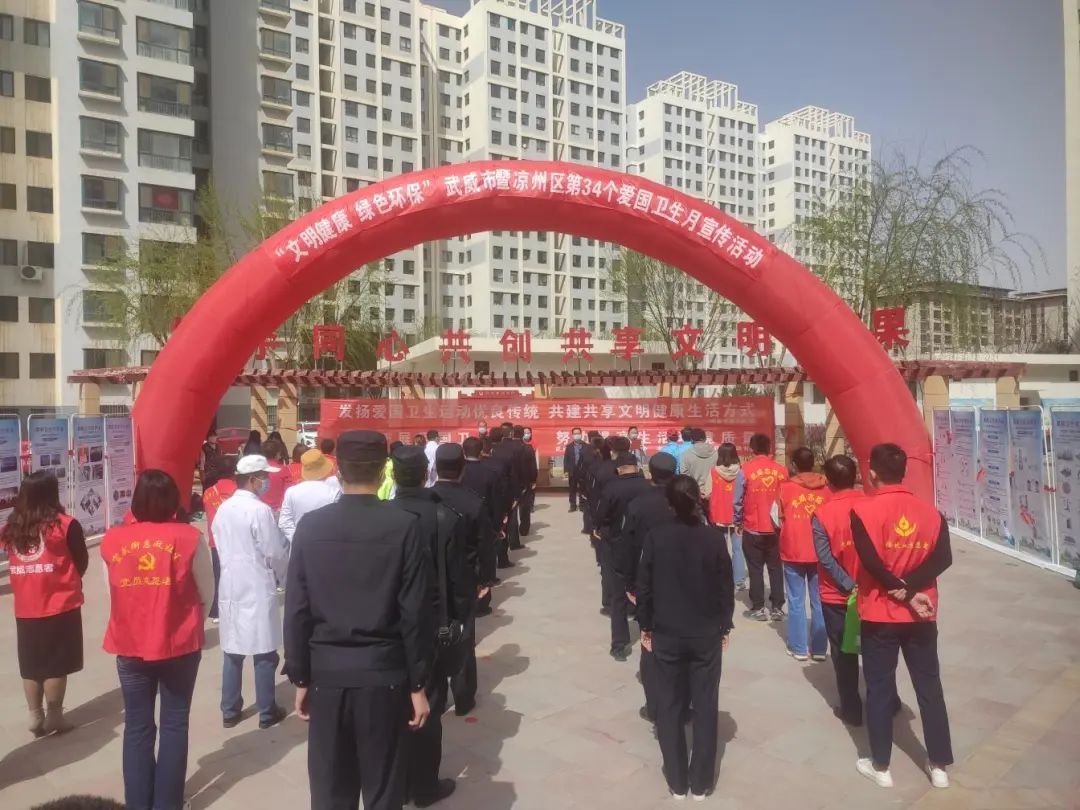 活动现场,宣读了《武威市第34个爱国卫生月倡议书》,号召广大市民群众积极参与爱国卫生月活动,共同建设健康平安家园。活动中通过宣传展板、悬挂横幅、发放文明健康手册和海报、开展健康义诊咨询等方式,向现场群众宣传加强疫情防控、树牢文明健康生活理念及爱国卫生70周年历史知识。同时,社区创城包抓共建单位的志愿者深入楼院开展了环境卫生清洁行动。