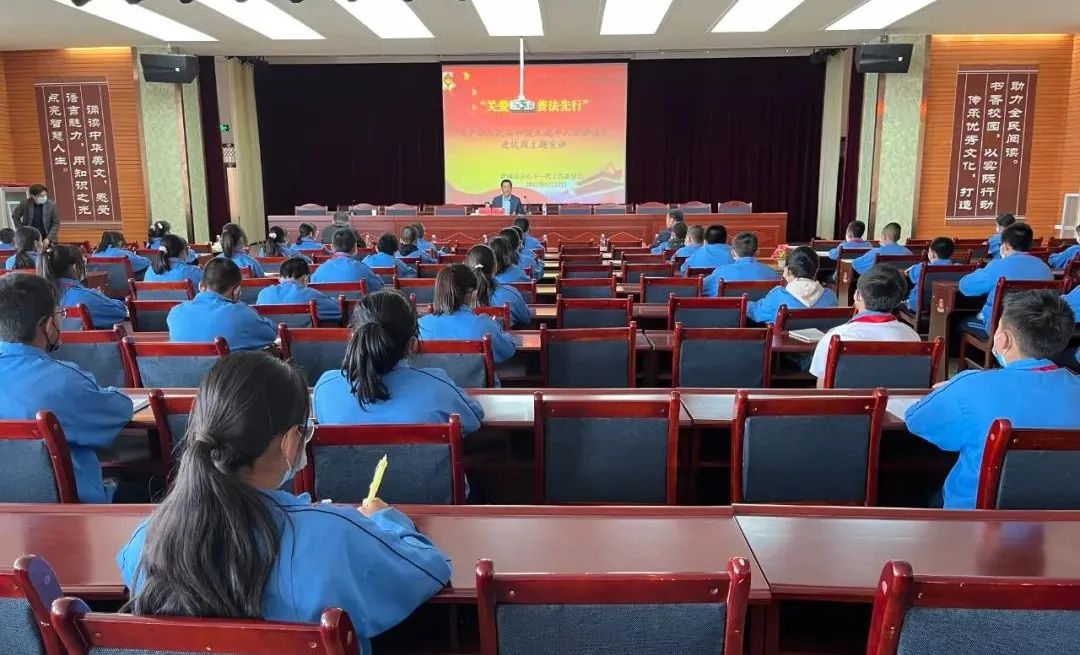 为保护广大未成年人合法权益,普及未成年人的法律常识,增强未成年人自我保护意识,加大《中华人民共和国未成年人保护法》的宣传力度,推动老少同声颂党恩、携手喜迎二十大主题教育实践活动取得实效。5月19日,武威市关工委办公室邀请全省关心下一代工作先进个人、省级最美五老、省关工委五老关爱团武威组组长、市人大常委会原秘书长、市关工委法制帮教团团长蔡多学,在民勤五中开展关爱明天、普法先行”——《中华人民共和国未成年人保护法》进校园主题宣讲,共220余名师生聆听讲座。