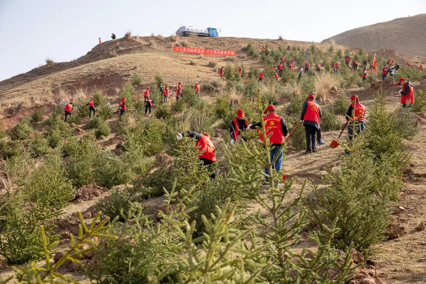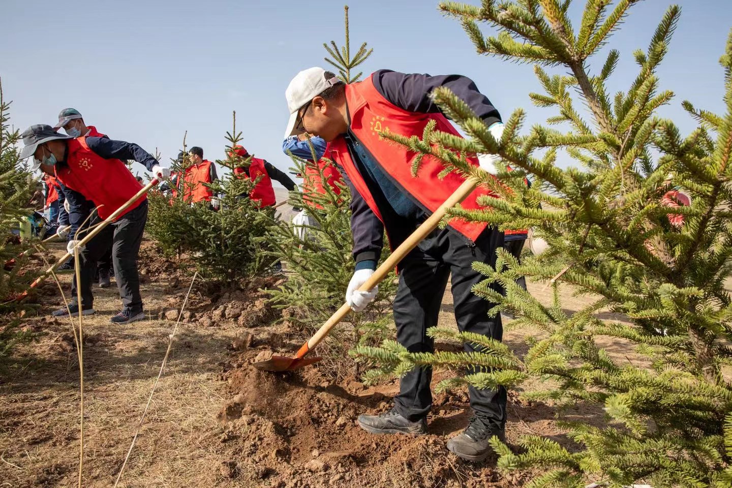 植树过程中,广大志愿者充分发扬不怕苦、不怕累的精神,明确分工,密切配合,严格遵照林业技术人员的指导进行树木栽植,确保苗木成活率。在大家的努力下,一棵棵新栽种的树苗迎风而立,在植树点形成了一道亮丽的风景,为春天的古浪大地增添了勃勃生机。