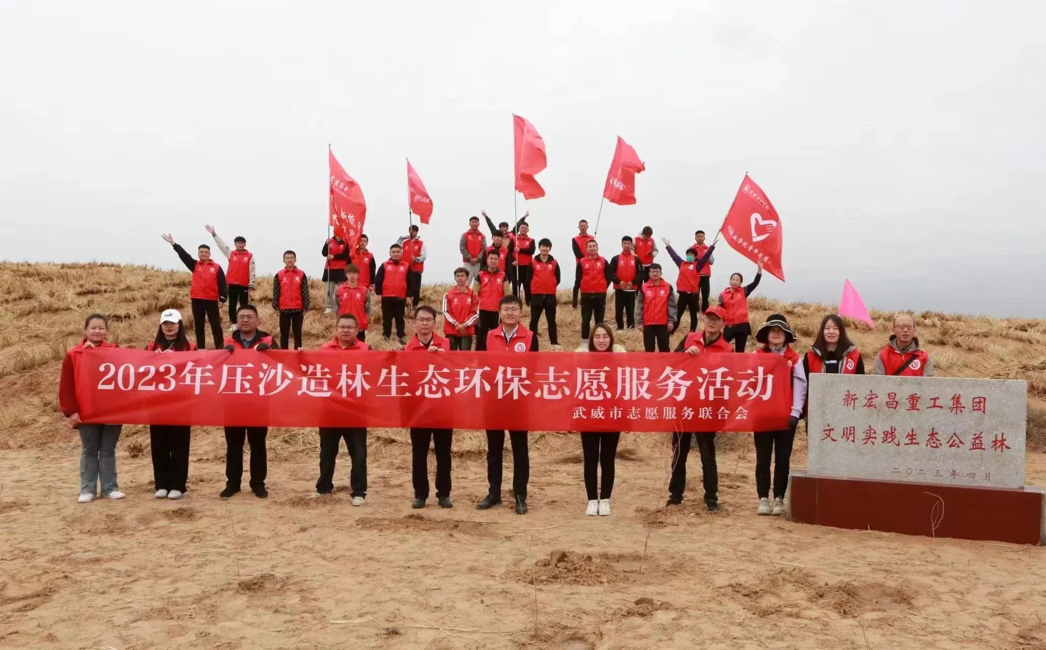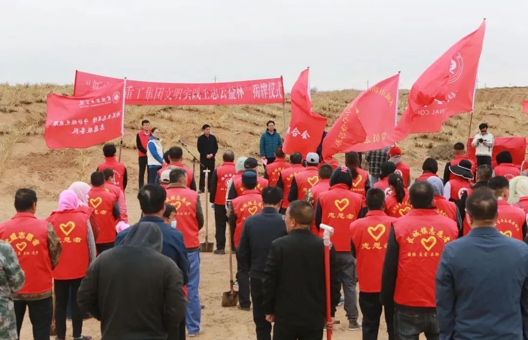 4月27日上午,武威市文明实践办、武威市志愿服务联合会在凉州区长城镇五墩村举行新宏昌重工集团文明实践生态公益林揭牌仪式。