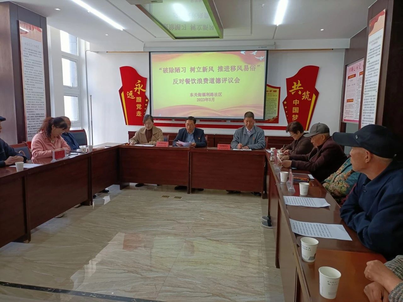 评议会上,福利路社区居民代表共同商讨了社区居民公约修订内容,宣读了《反对餐饮浪费倡议书》,社区居民代表围绕反对餐饮浪费、破除陋习、树立文明新风进行了发言。
