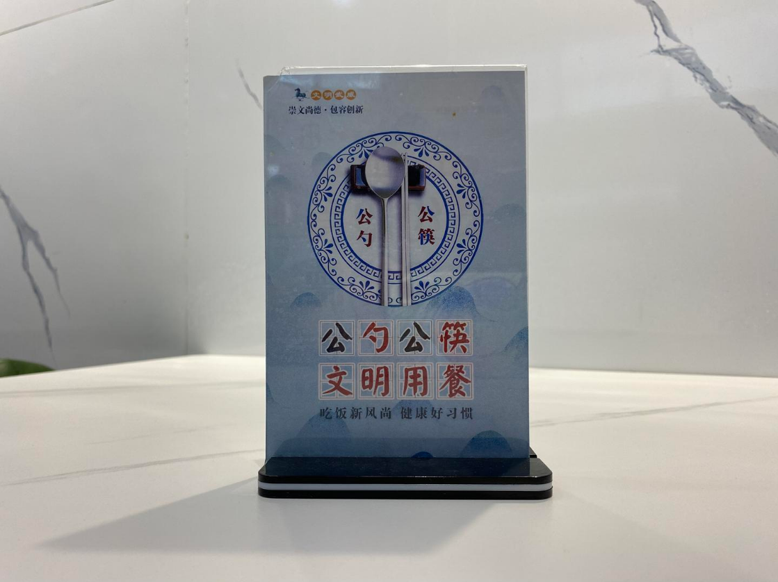 三楼的各家餐厅里,商家在醒目位置张贴着推行“分餐制”倡议书、餐饮公开承诺书、“节约粮食、杜绝浪费”“适量点餐、剩餐打包”的海报,“公筷公勺”宣传桌签也实现了全覆盖。“建议您主食先点半份”“推荐半价菜、小份菜更适合”“剩菜剩饭可以打包带走”……餐厅里,服务人员温馨提示顾客们适度点餐、合理消费。