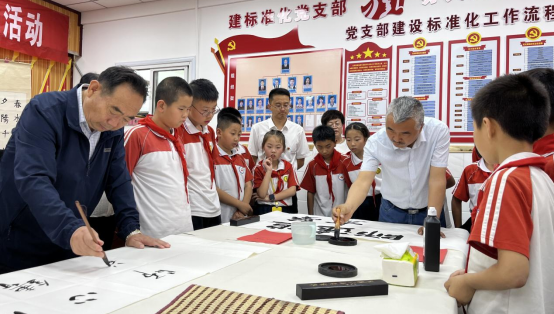 活动中,书法名师翟相永根据学生年龄特点选择优秀书法作品进行分析鉴赏,就写好汉字的意义及汉字书写要领与同学们进行交流分享,并对学生们的握笔、坐姿等细节进行示范纠正。活动现场,书法家们还零距离与师生们进行了互动交流,从书法工具、步骤、技巧等方面一一进行了详细的讲解和示范,让在场师生获益匪浅。