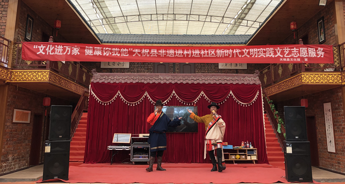 为贯彻落实习近平总书记在文化传承发展座谈会上的重要讲话和省文代会精神,积极践行“奉献、友爱、互助、进步”志愿精神,落实中国文联、省文联“文艺进万家健康你我他”新时代文明实践活动要求,8月18日,天祝县文化馆在天祝县天堂镇朱岔村开展“文化进万家健康你我他”天祝县非遗进村进社区新时代文明实践文艺志愿服务活动。