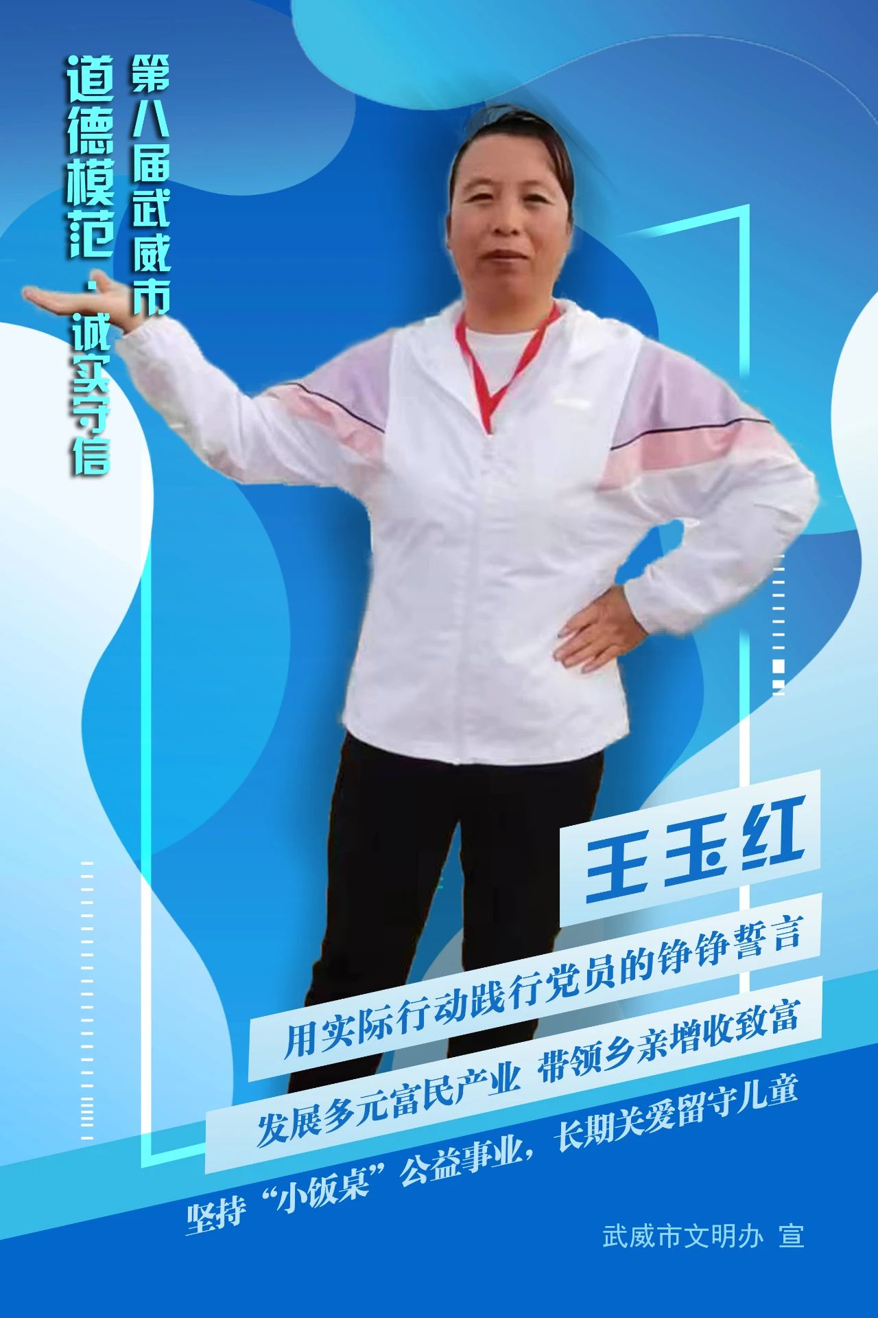 长期诚信经营的好口碑,王玉红被选为干城乡下石圈村村委会党支部书记,建成了古浪县南部山区最完善的设施养殖区,筹办成立了古浪县长秀农牧专业合作社、甘肃江泰劳务有限责任公司,带领乡亲们通过在家养殖和外出务工两个渠道增收致富。积极响应习近平总书记提出的“绿水青山就是金山银山”的号召,牵头实施了再造绿水青山项目打造林下养殖基地,为了说服山区群众,夫妻二人一家一家地跑、一户一户走访,讲政策,说收益,拿出血汗钱先行垫资,以诚信打动了山区人民,创办的合作社共流转干城乡迁出土地500多亩,组织贫困群众种植了6万多株山杏,昔日光秃秃的山梁如今变的郁郁葱葱。又成立了“小饭桌”公益事业,长期服务140名留守儿童。她始终坚守初心,牢记使命,用热心真情促进了村子的和谐富裕,用实际行动践行一名党员入党时的铮铮誓言。