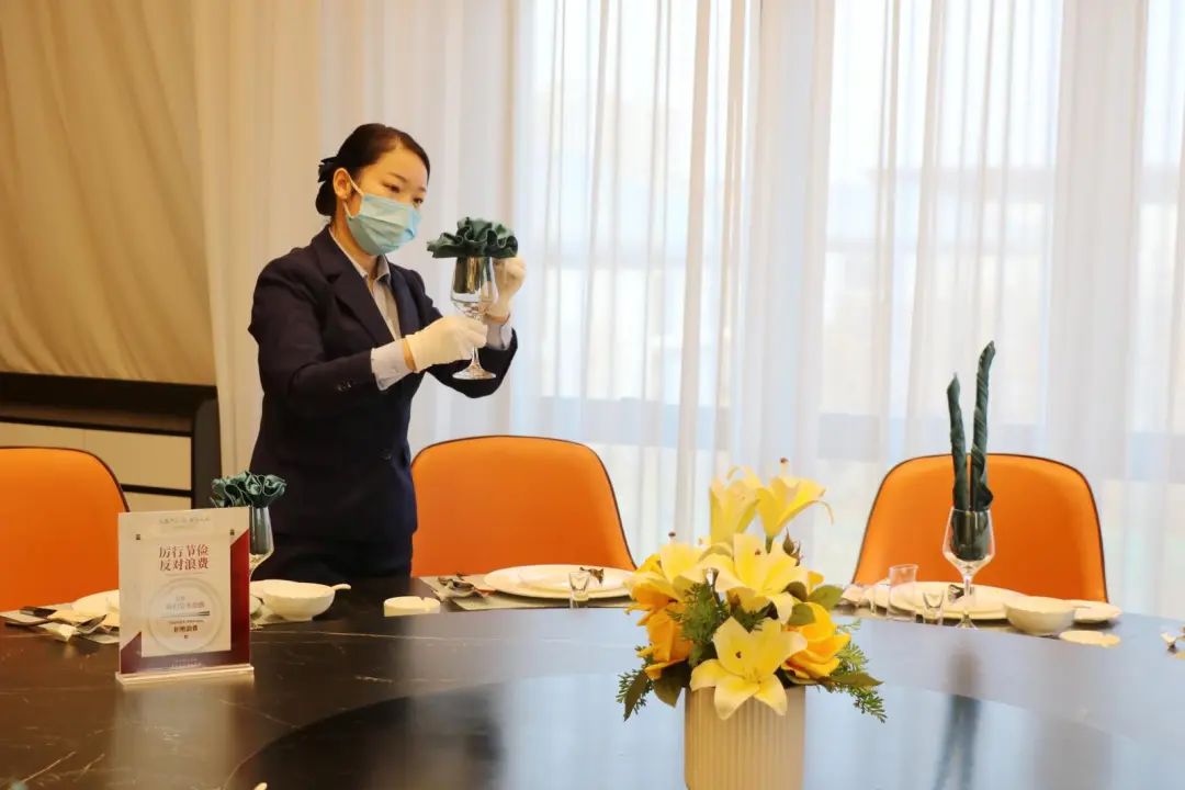 “我们每周都对工作人员进行餐饮服务培训,要求工作人员全程高标准、规范性操作每一个制作环节,做到‘透明厨房、阳光操作’。”公航旅伊兰集团国府一品店长刘乐天说:“传菜员在点菜时与顾客做好引导沟通,时刻善意提醒,提示客人吃多少点多少,主动提醒并推荐‘N-1’点菜模式,并在餐尾时提供打包服务,让消费者既要吃得好,又不能浪费。”