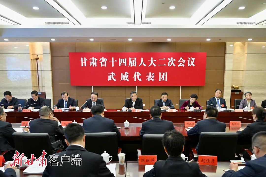 省人大代表、省委副书记、省长任振鹤今天参加省十四届人大二次会议武威代表团审议。他强调,要坚定不移贯彻落实习近平总书记对甘肃重要讲话重要指示批示精神,始终以创新、协调、绿色、开放、共享的内在统一来把握发展、衡量发展、推动发展,正确处理好生态环境保护和经济发展的关系,大力弘扬“困难面前不低头、敢把沙漠变绿洲”的奋斗精神,牢记嘱托、奋发进取、真抓实干,切实以高品质生态环境支撑高质量发展、以高质量发展推进现代化建设,走好生态优先、绿色发展之路。