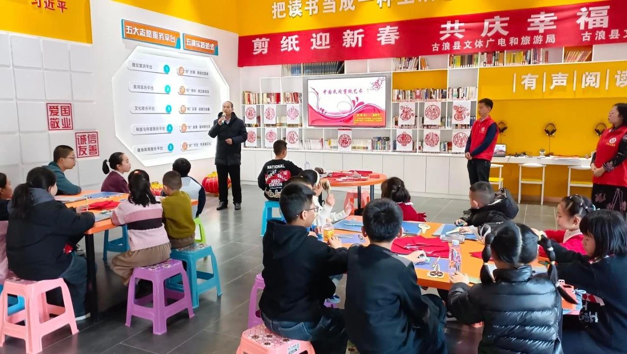 2月4日下午,古浪县文明实践办组织县文旅局、县文化馆在县新时代文明实践中心开展“志愿服务新春行 实践中心过大年”系列活动之“剪纸迎新春共度幸福年”文明实践活动。