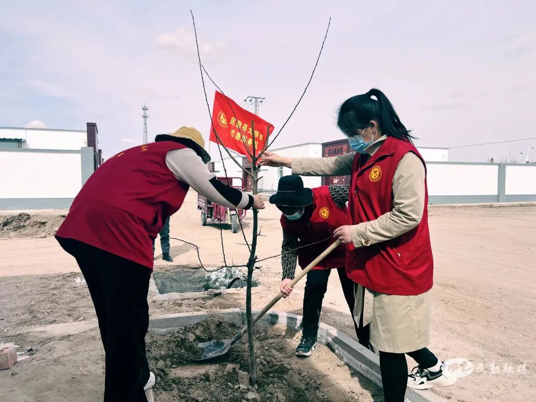 民勤县大坝镇新时代文明实践所抢抓春季造林绿化黄金期,全面吹响植树增绿的号角。组织镇机关干部、部分村党员干部、志愿者共40多人开展义务植树活动,增强广大干部群众植树造林的积极性和保护生态环境的意识,提升绿化家园和保护环境的责任感。党员干部、志愿者率先垂范,转观念、破陋习、树新风,以实际行动影响他人,用实际行动践行“绿水青山就是金山银山”的理念。