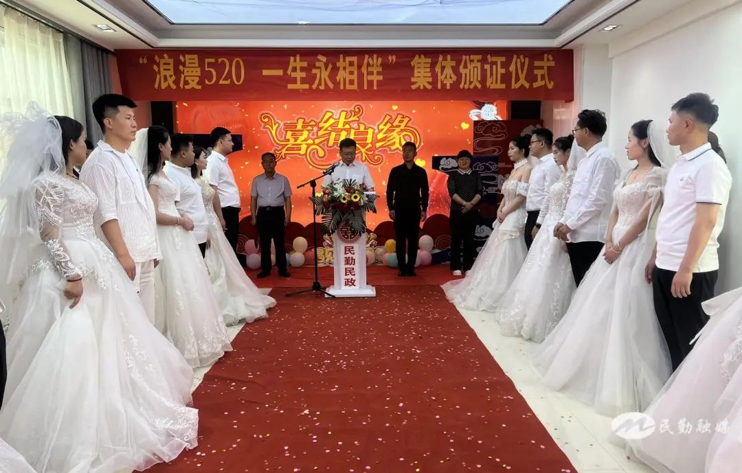 每年的5月20日,因谐音“我爱你”,被很多新人选择为登记结婚的日子。今年520恰逢节气小满,更是寓意和谐美满,是浪漫爱情之美,也是“移风易俗”的风尚之美。此次参加集体婚礼的新人,是文明婚嫁新风的引领者,推进婚俗改革的践行者!