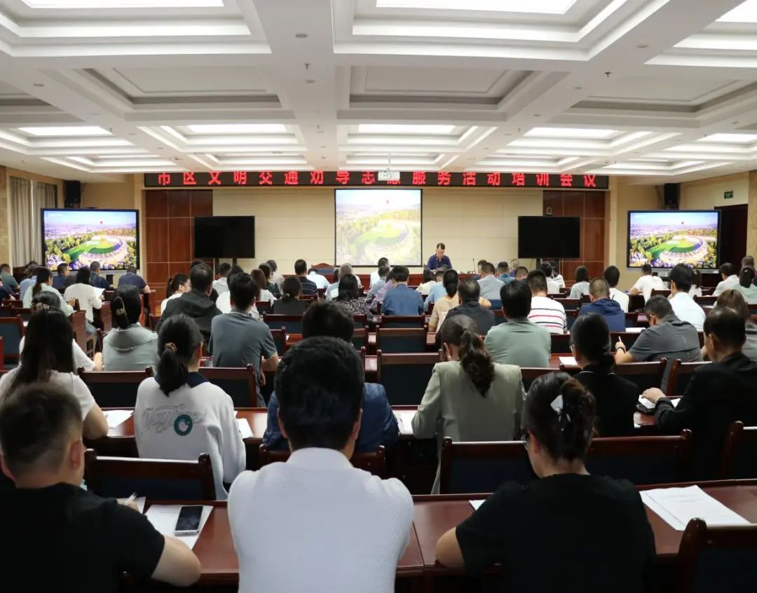 市创城办干部对主次干道交通路口文明交通志愿服务的重要性、文明交通劝导志愿者的工作内容、着装规范、行为规范、执勤站位、上岗用语、劝导服务中的安全注意事项等内容作了详细的示范讲解和演示培训。