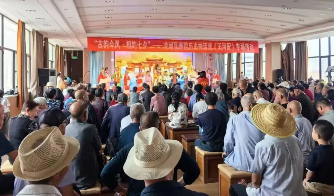 8月8日,凉州区文化馆文明实践基地开展“古韵今风·相约七夕”秦腔历史神话戏——《天河配》专场活动。金风玉露一相逢,便胜却人间无数......艺术家们以铿锵有力的唱腔,用秦腔的独特韵律,重现了这段感人至深的经典爱情,观众沉浸于中华民族优秀传统文化秦腔艺术的独特魅力。