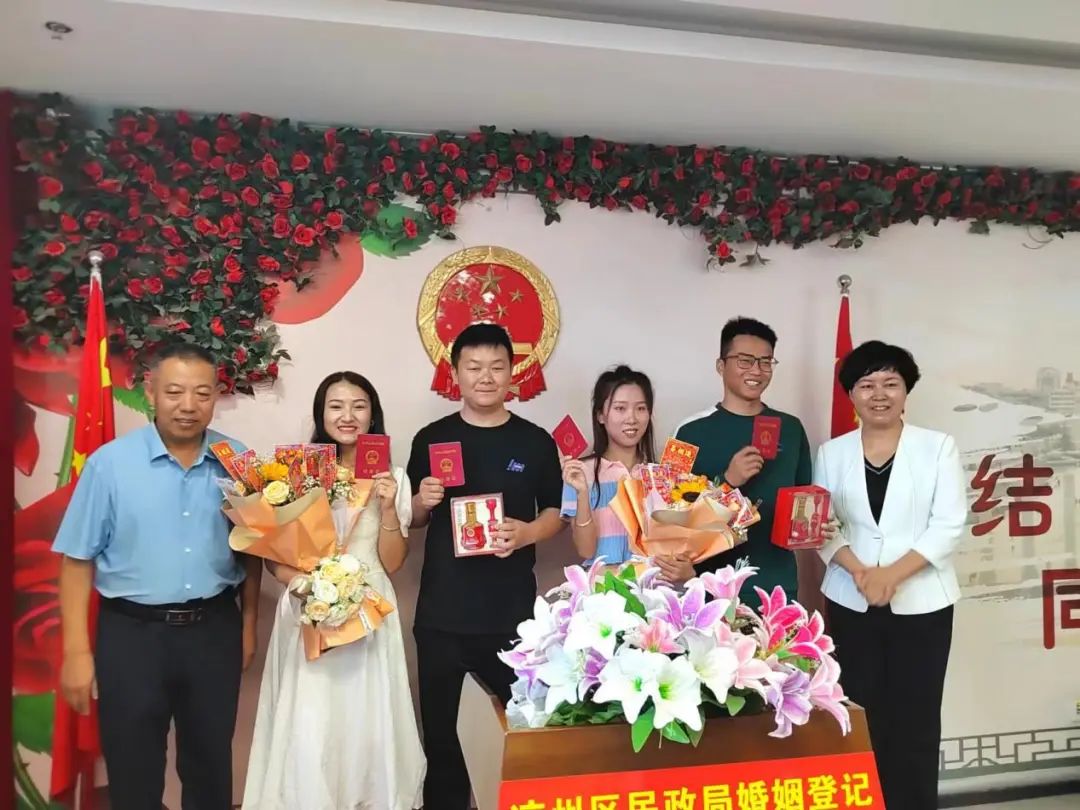 8月10日,市、区联合举办以线上线下相结合的方式开展“爱满鹊桥·缘定七夕”集体颁证仪式。100多对新人在喜庆温馨、周到服务的办证大厅领取了结婚证。通过活动呼吁大家抵制高价彩礼、反对铺张浪费,树立正确的婚姻观和恋爱观,展现新时代青年的担当与责任。