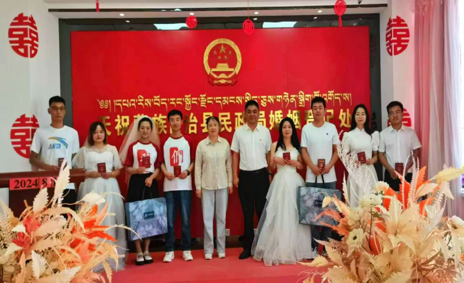 8月10日,天祝县举办“我们的节日·七夕”结婚登记集体颁证仪式,为22对预约新人办理了结婚登记,共同见证新人们的幸福时刻。此次活动,鼓励每一个家庭行动起来,弘扬文明新风,推进移风易俗,做文明有礼新人,建和谐有爱家庭。