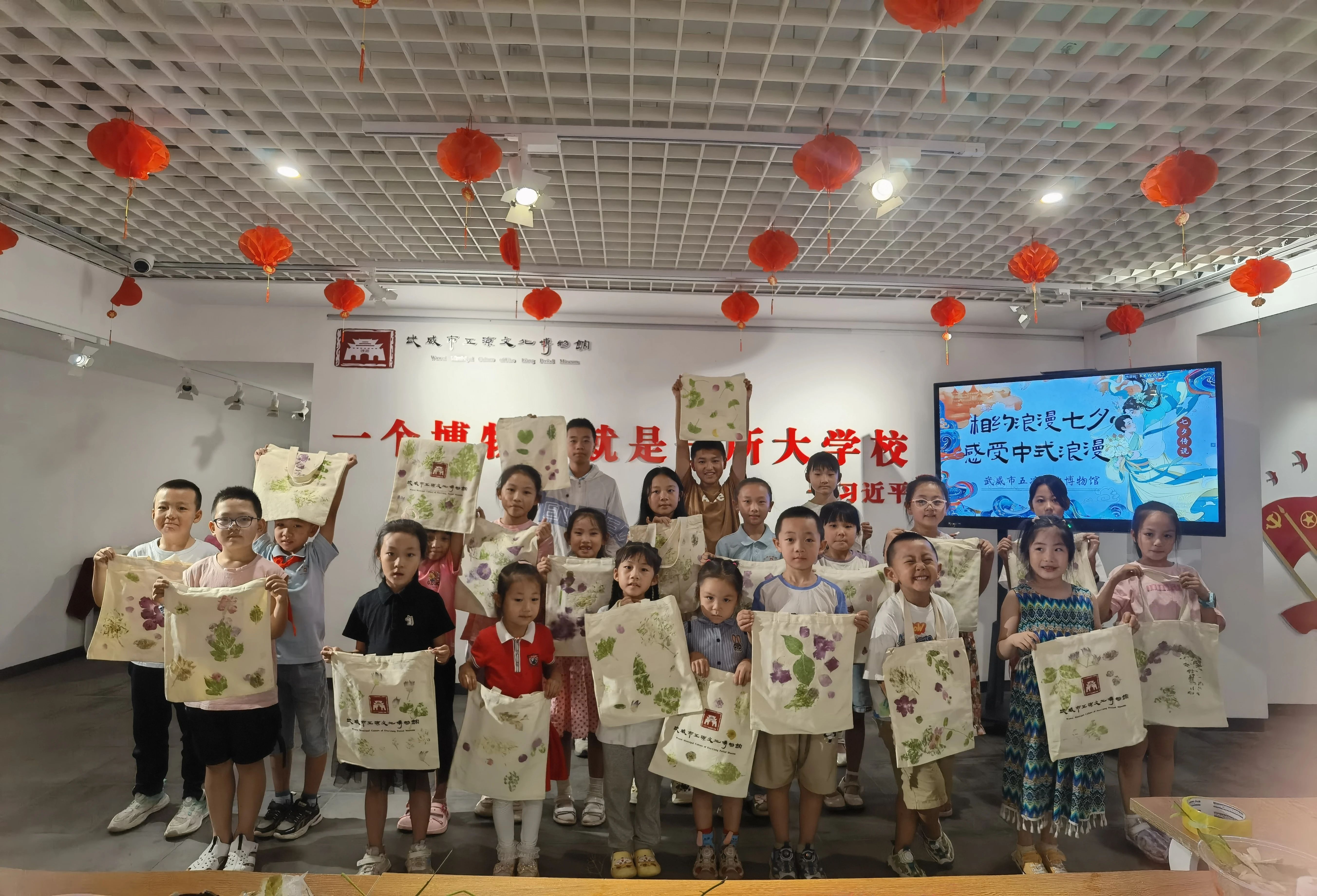 8 月 10日,正值七夕佳节,武威市五凉文化博物馆别出心裁举办了一场以“相约浪漫七夕·感受中式浪漫”为主题的非遗社教活动——植物拓印。小朋友们以一种独特而富有创意的方式,感受着传统文化与自然之美的交融。