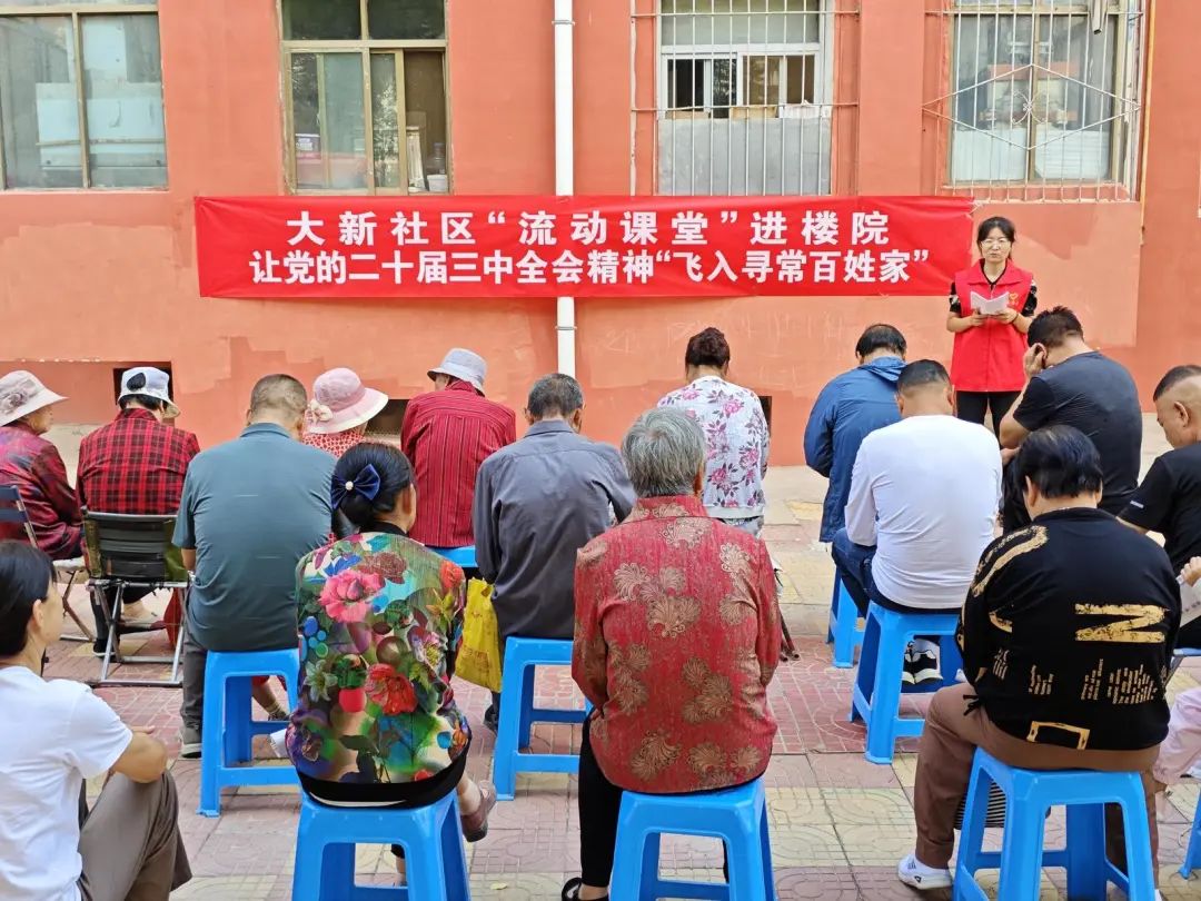 初秋时节,凉州区火车站街大新社区以“楼院‘微宣讲’,讲出理论‘好声音’”为主题,有针对性地为辖区党员群众开展了一场有温度、接地气的宣讲报告。此次宣讲,以“小切口”宣讲“大主题”,将理论宣讲形式从以往的“组织居民来听”转变成“到居民中去讲”,变长篇大论为精彩短章,把宣讲送到百姓家门口,把党的二十届三中全会精神传进群众心里。