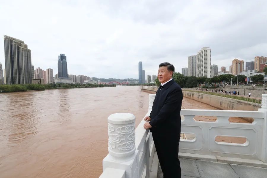 2019年8月21日,习近平总书记来到兰州黄河治理兰铁泵站项目点,登上观景平台,俯瞰堤坝加固防洪工程,了解当地开展黄河治理和生态保护情况。总书记指出,黄河、长江都是中华民族的母亲河。保护母亲河是事关中华民族伟大复兴和永续发展的千秋大计。