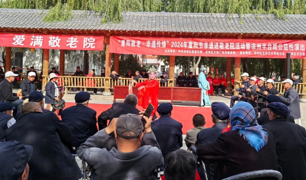 在凉州区中心敬老院和金塔镇敬老院,凉州半台戏、凉州贤孝等非遗项目正在上演,《十里亭》唱腔婉转引人入胜,《杨小娃拉柳耙》讲述了小娃和爷爷之间的温馨的亲情故事。