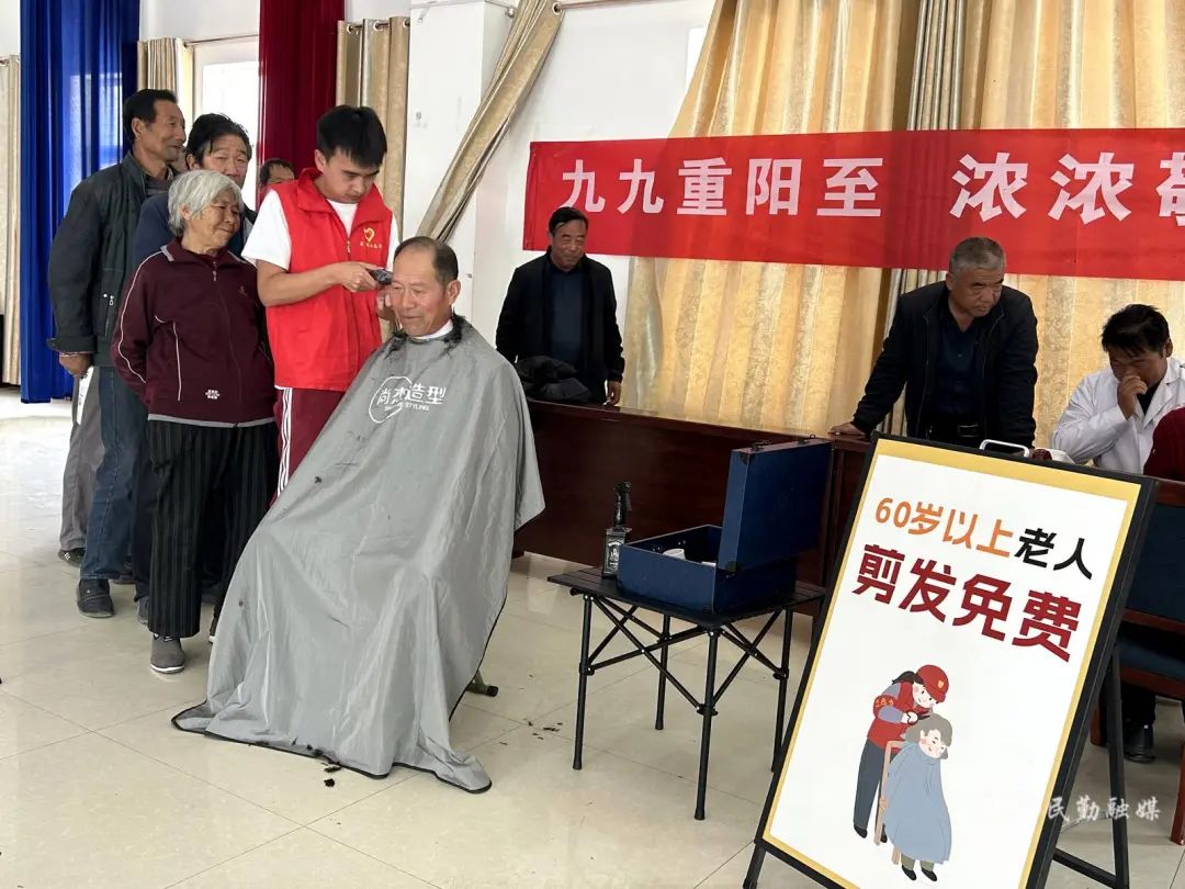 民勤县薛百镇在五星社区开展爱心义诊、义剪志愿服务活动,为辖区60岁以上老人义务剪发,老人们看着自己清爽的发型,连连称赞:“真是谢谢你们,把服务送到家门口,真贴心。