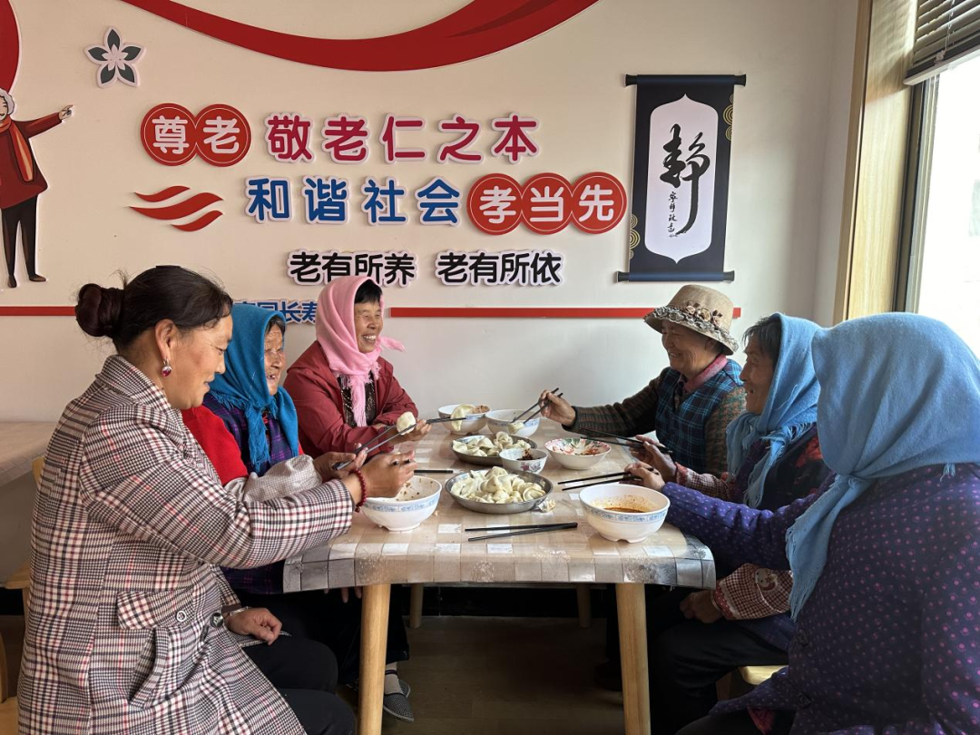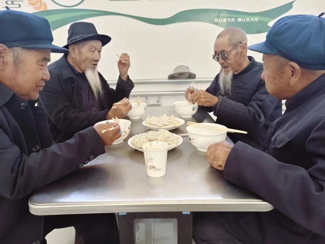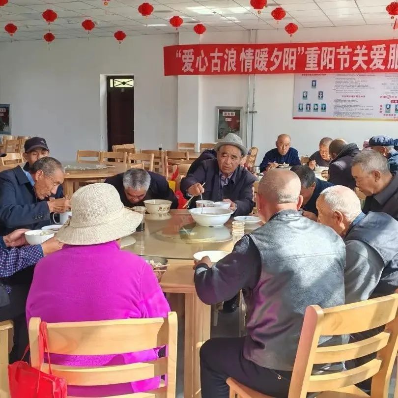 古浪县泗水镇开展重阳节敬老爱老关爱服务行动,老人们在泗水镇新时代文明实践所爱心食堂吃饺子、话家常。