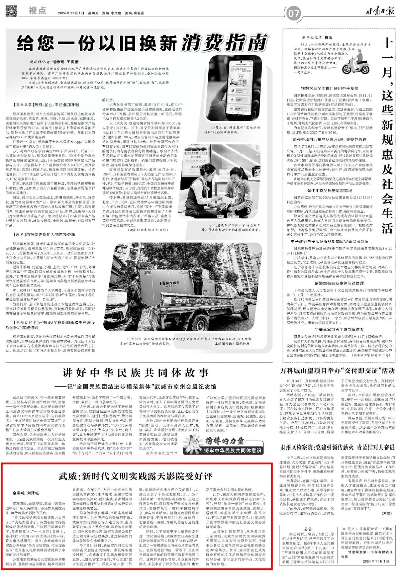 11月1日《甘肃日报》刊登