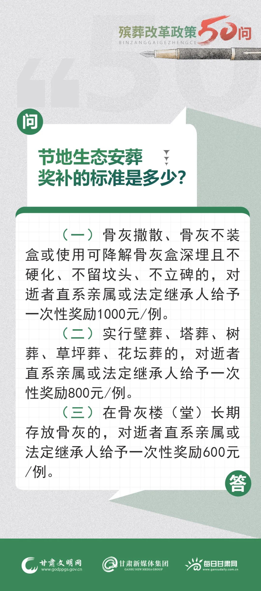 甘肃省殡葬改革政策50问 | 第38问:节地生态安葬奖补的标准是多少?