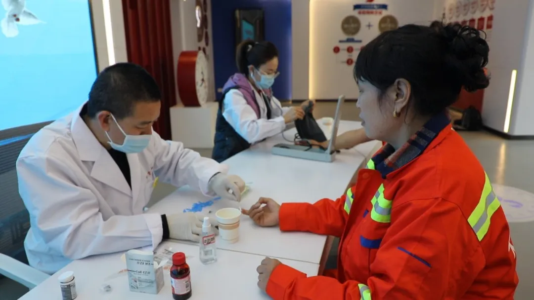活动中,保和堂诊所的医疗志愿者为环卫工人提供了测量血压、血糖等免费义诊服务,细致询问健康状况,提出保健建议,让一线劳动者感受到社会的关怀与温暖。