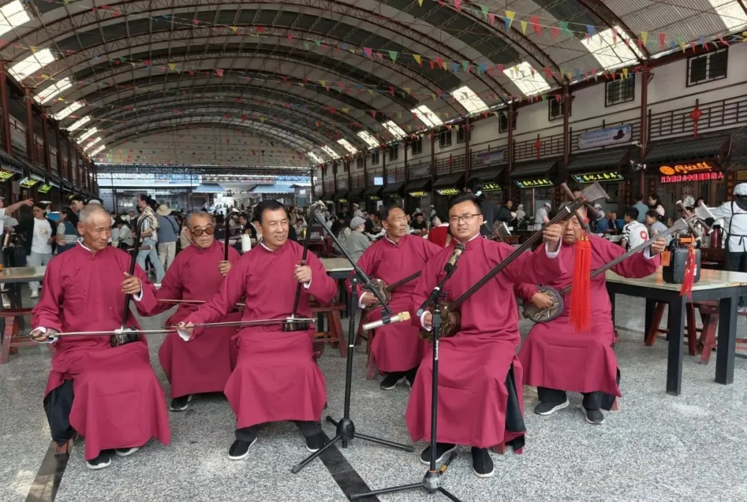 5月2日,直播镜头切换至武威北关市场,这里充满了浓郁的生活气息和文化底蕴。国家级非遗“凉州贤孝”的传承人怀抱三弦,用质朴的凉州方言和婉转的曲调,讲述着古老的故事与新时代的发展,声声入耳,让观众感受到非遗的独特魅力。不远处,“凉州三套车”摊位前热气腾腾,行面的爽滑、卤肉的醇厚、茯茶的香甜,摊主现场展示制作过程,散发的香气似乎透过屏幕飘出,勾起观众的食欲,也展现了凉州独特的饮食文化。直播中同步穿插趣味问答,游客可边品美食边学文化知识,实现“舌尖与耳朵的双重满足”。